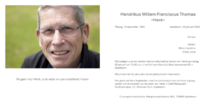 Tot op een dag. En die dag was afgelopen zondag 25 januari om 14.30 uur. Henk is overleden in het ziekenhuis omringd door zijn geliefden. Al met al was dit toch nog een sneller overlijden dan verwacht.